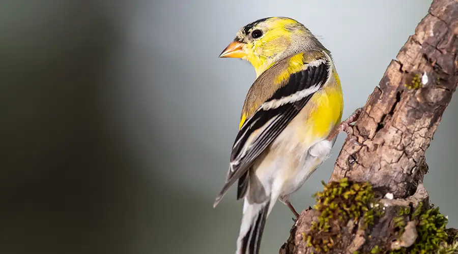 Goldfinches are strict vegetarians, and they love nyjer seed. During winter, their bright yellow summer feathers soften to a warm olive tone, but their energetic, social behavior stays the same.