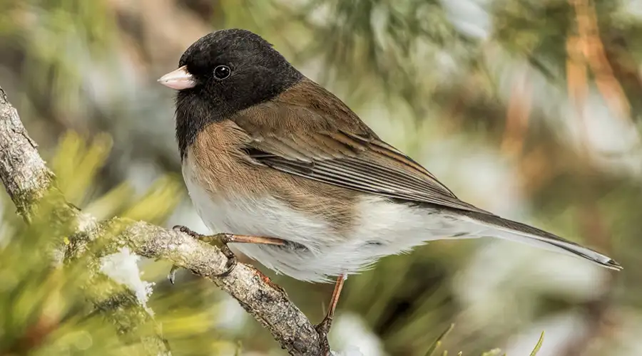 Often nicknamed “snowbirds,” juncos appear in greater numbers as cold weather arrives. They are ground feeders and prefer to hop rather than perch.